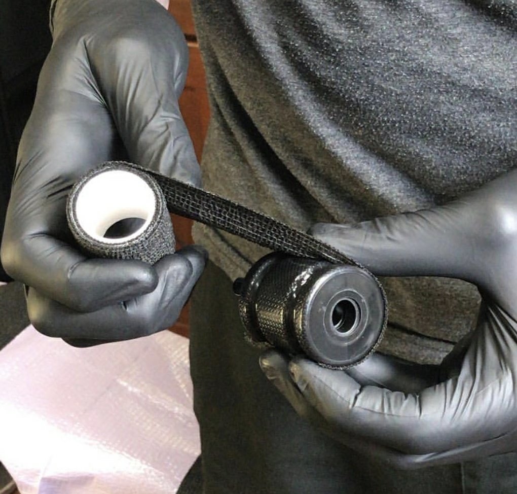 Ce ruban adhésif de tatouage se termine autour de la poignée de tatouage, agissant comme une barrière rembourrée qui absorbe les vibrations du moteur.