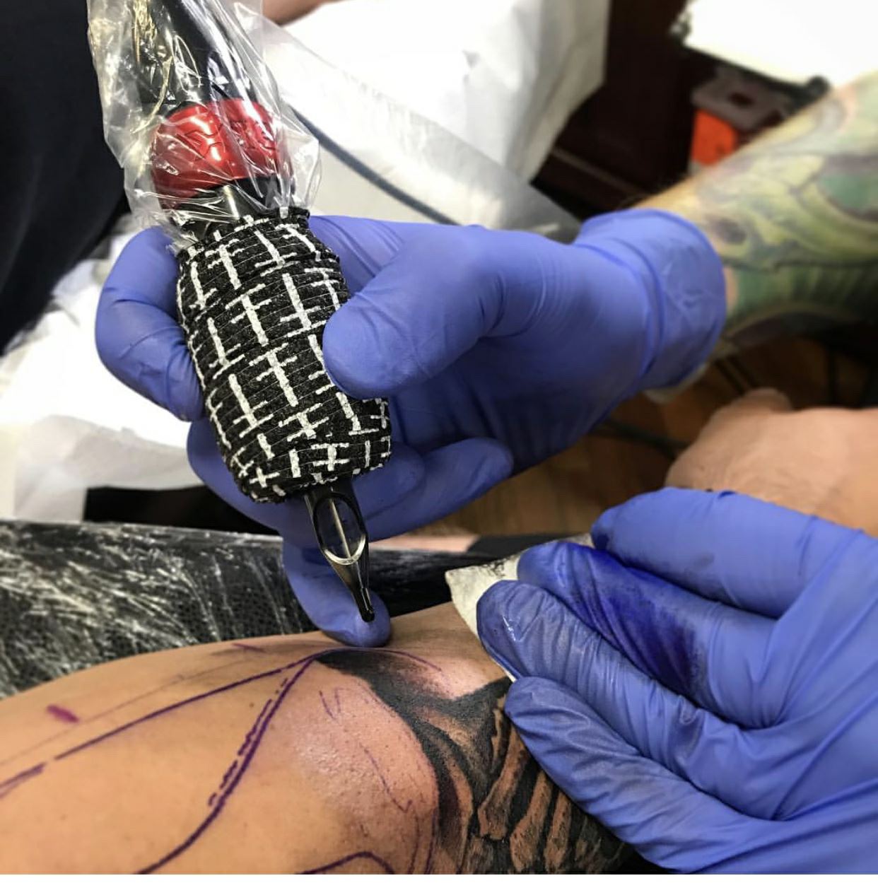 La prise de poignée de tatouage vous donne un meilleur contrôle sur le travail et l'ombrage en ligne.